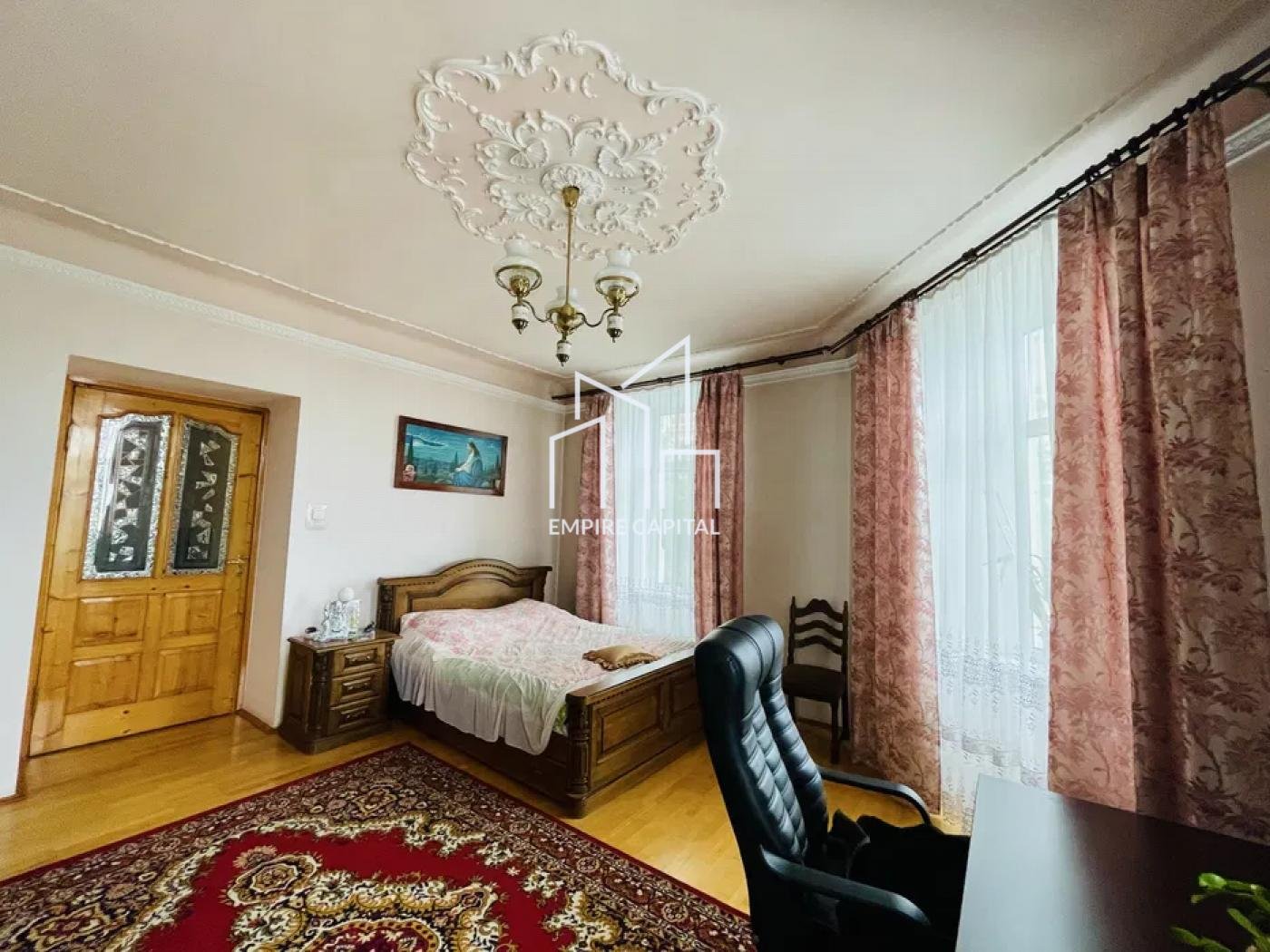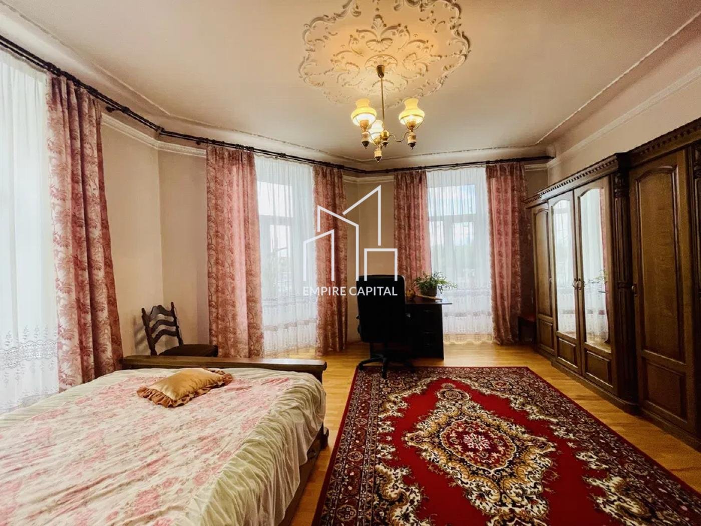 Сонячна тепла квартира з гарним гіпсовим оздобленням стелі, деревʼяними дверима, паркетом та орнаментними кахлями на пічках у красивому австрійському будинку здається в оренду.