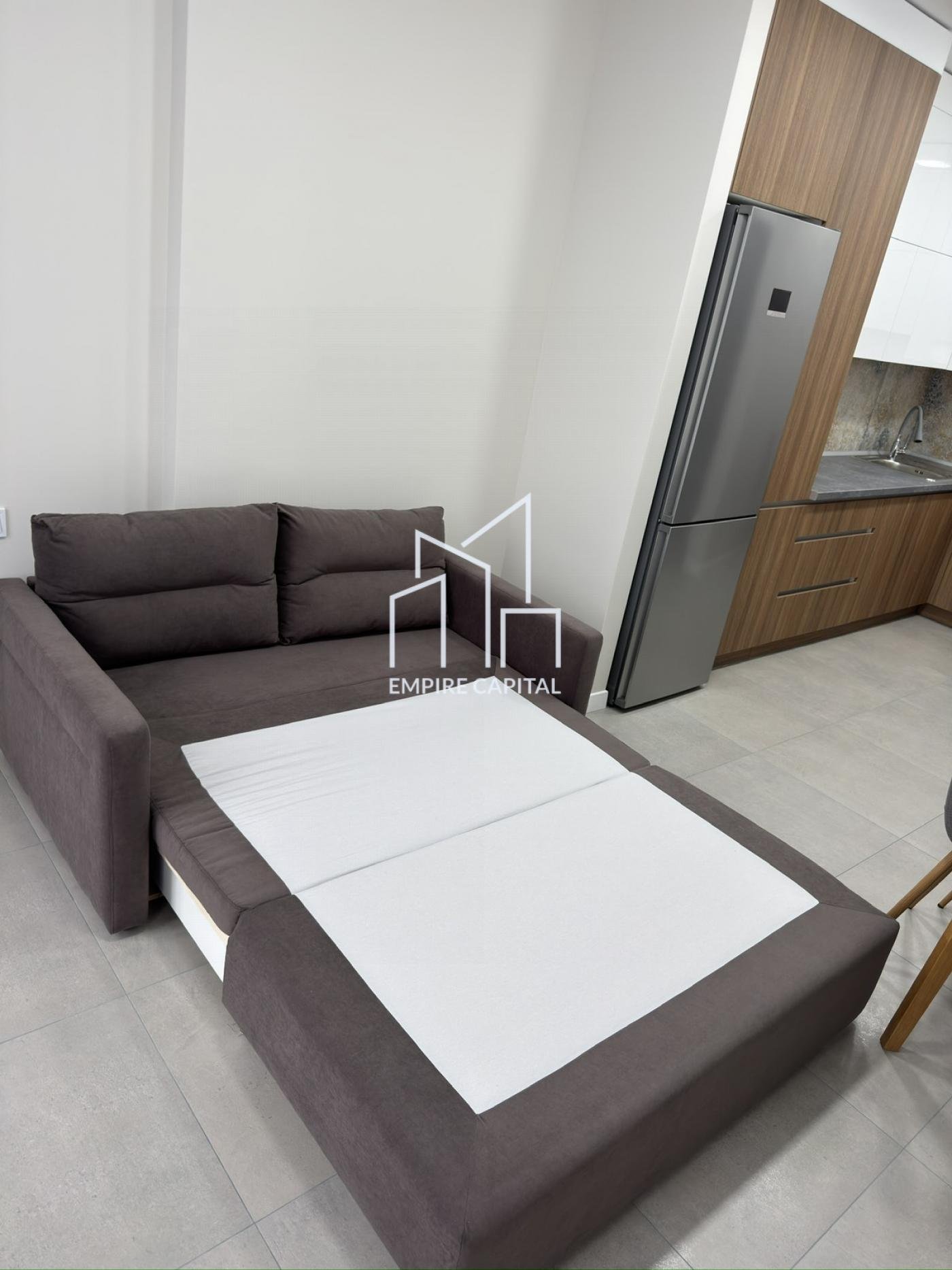 Площа 45 кв. м. Спальня в великим ліжком, кухня простора з розкладним диваном.