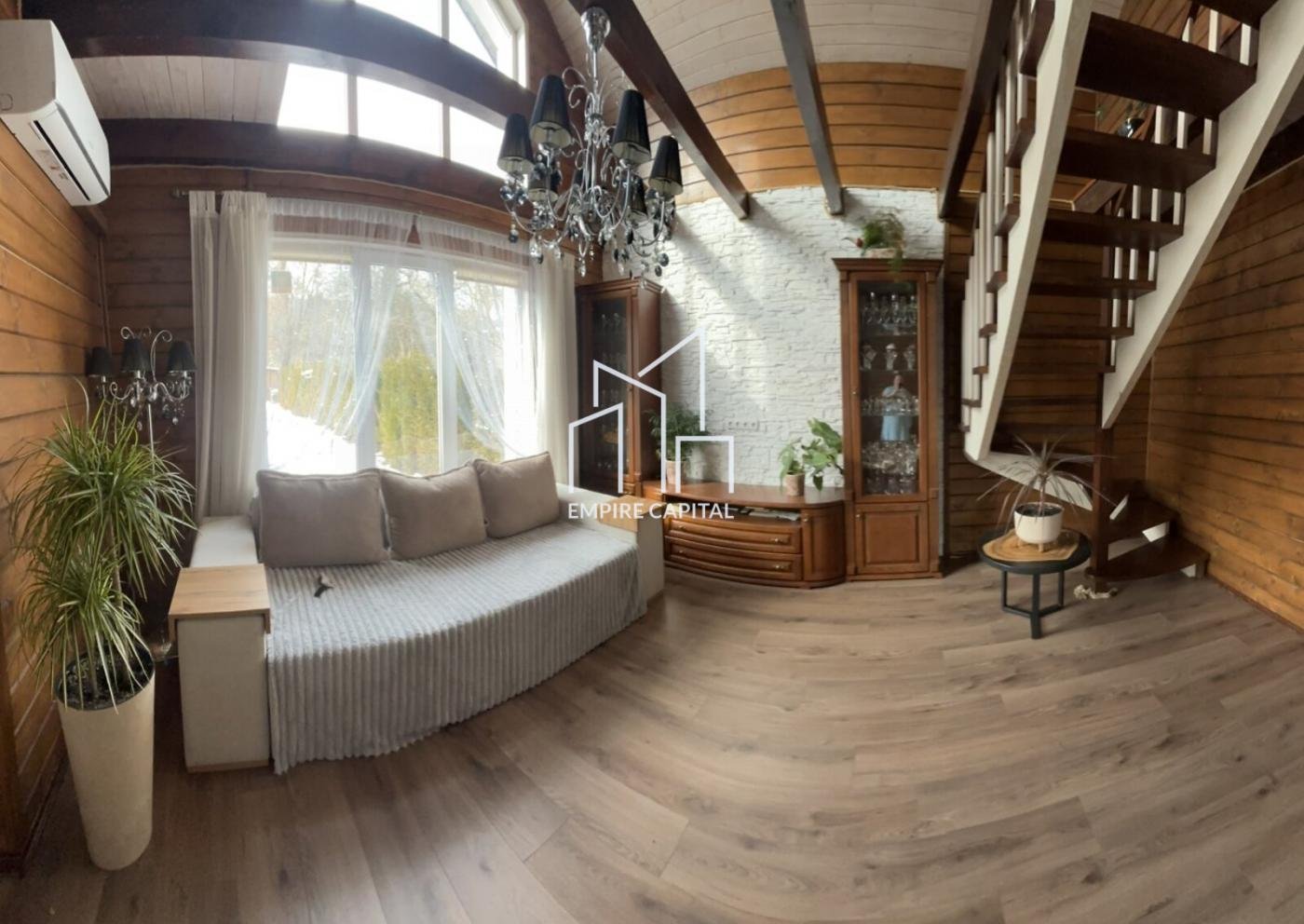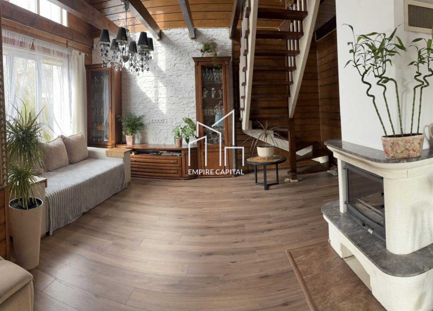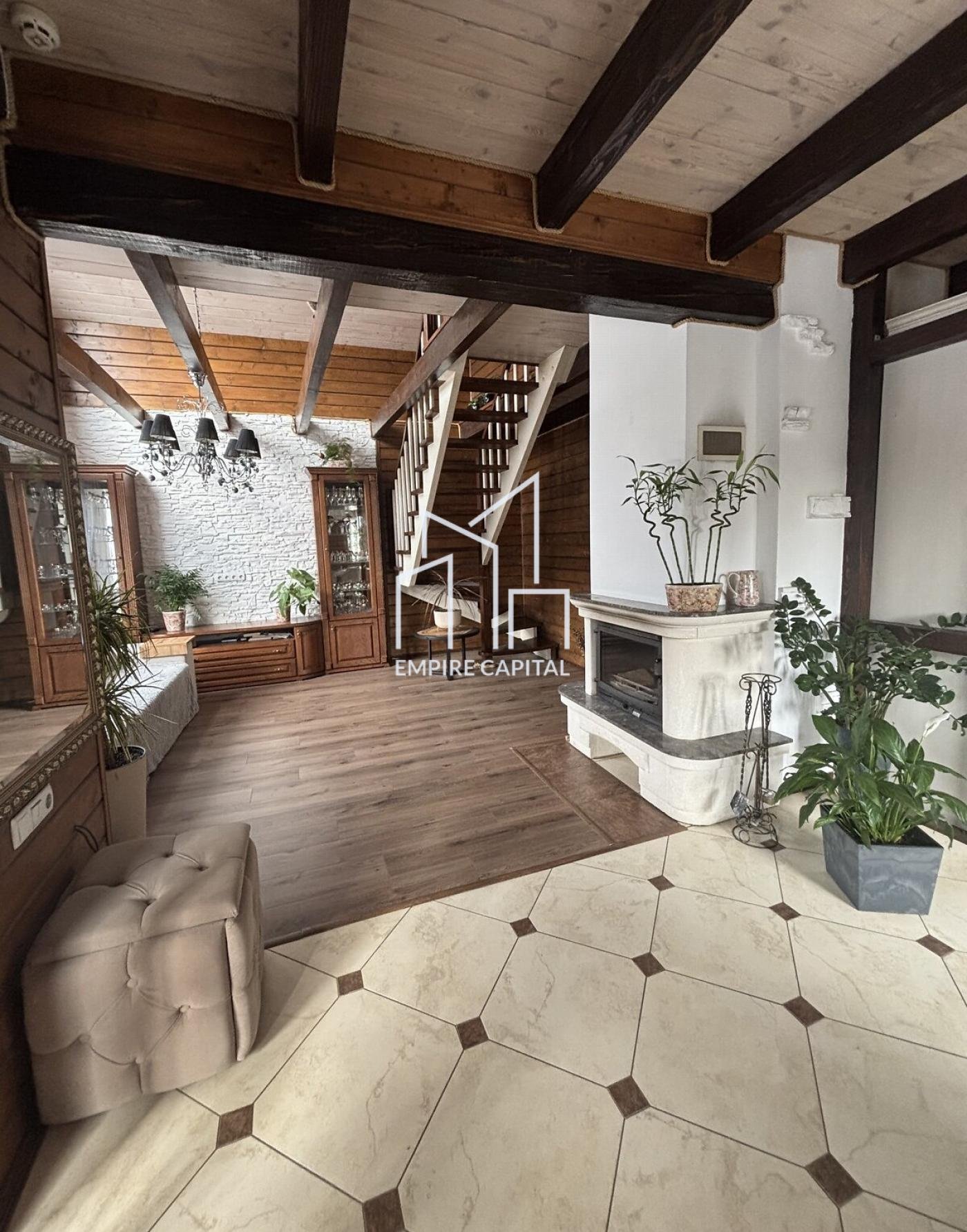 -Перший поверх велика зала вітальня, кухня, гардероб та ванна кімната.