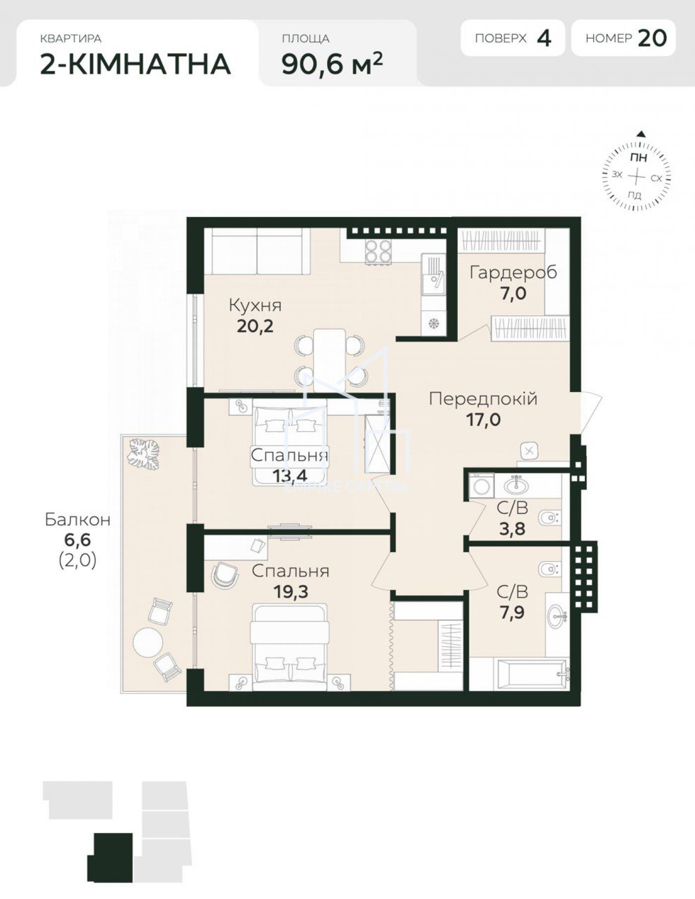 -Кількість кімнат:2