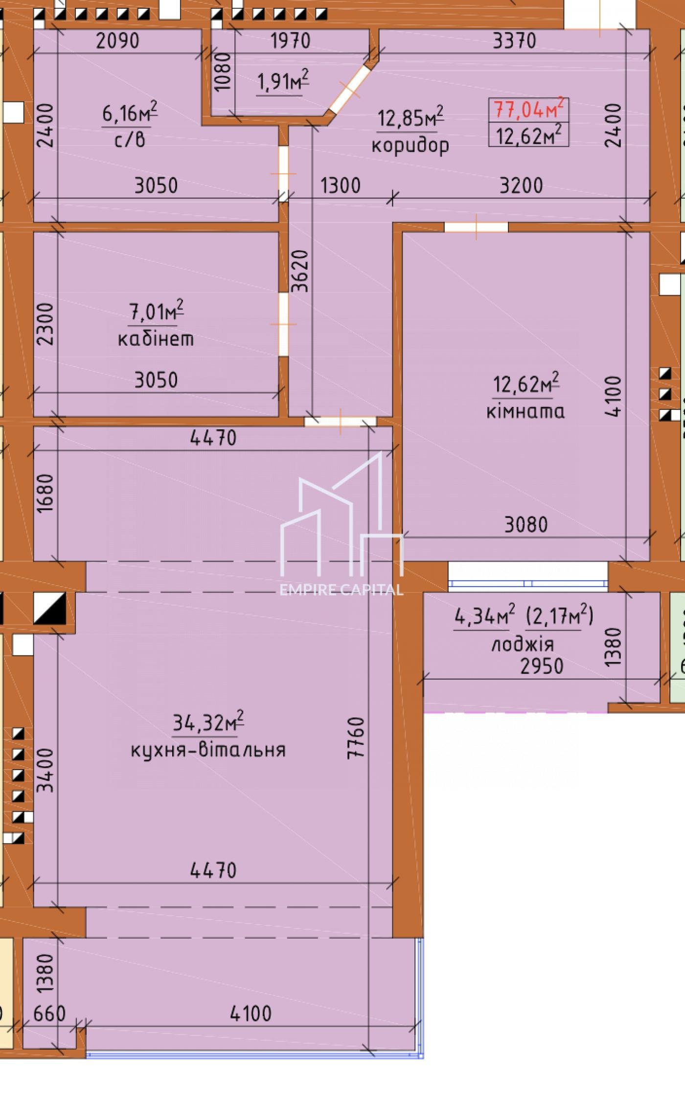 Загальна площа: 77.04 м²