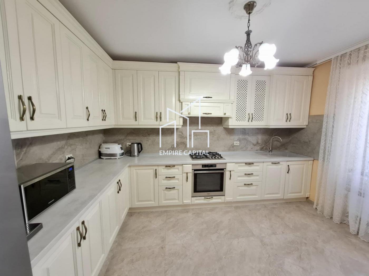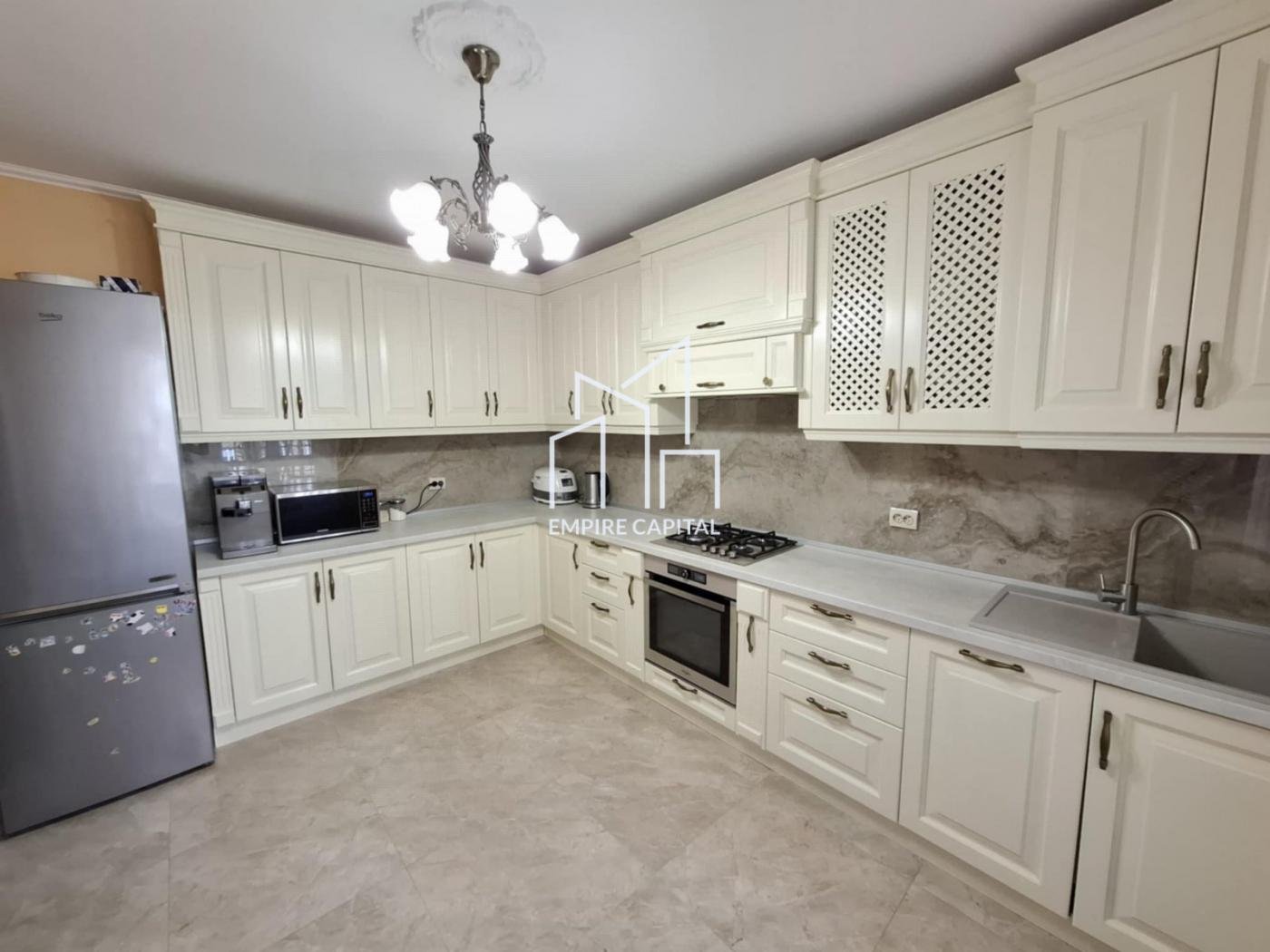 -Зроблено дорогий ремонт в класичному стилі, дубові двері і кухня, дубовий паркет , меблі з натурального дерева, якісна побутова техніка, посудомийна машина нова.